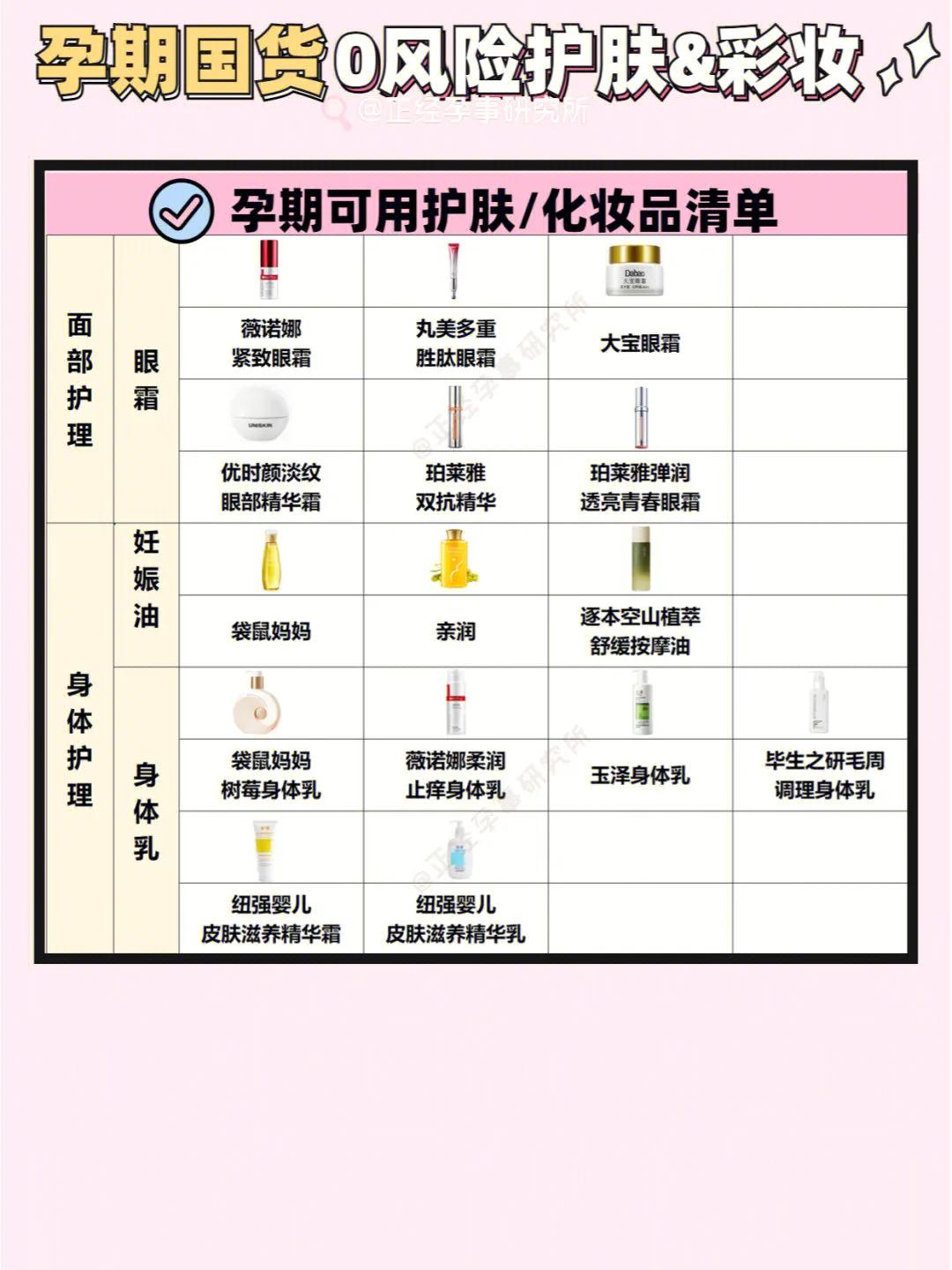 今天整理了一份宝藏国货大合集❤,把孕期可用的洗面奶、爽肤水,水乳、面膜、面霜、眼霜、身体乳、防晒、粉底一次说清楚!都是无孕妈慎用成分的,全套护肤流程都有!✅