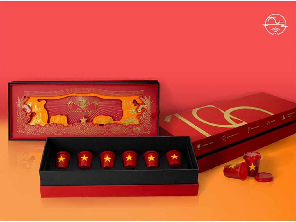为迎接中国共产党百年华诞,特创作《盛世鸿运尊》系列产品,祝愿全国人民在党的领导下奋勇前进,幸福安康,祝愿祖国繁荣昌盛、国泰民安。天安门、红船、拓荒牛、骆驼、和平鸽、牡丹花、红飘带,象征着中国共产党定会领导中国迎接更加辉煌的未来。