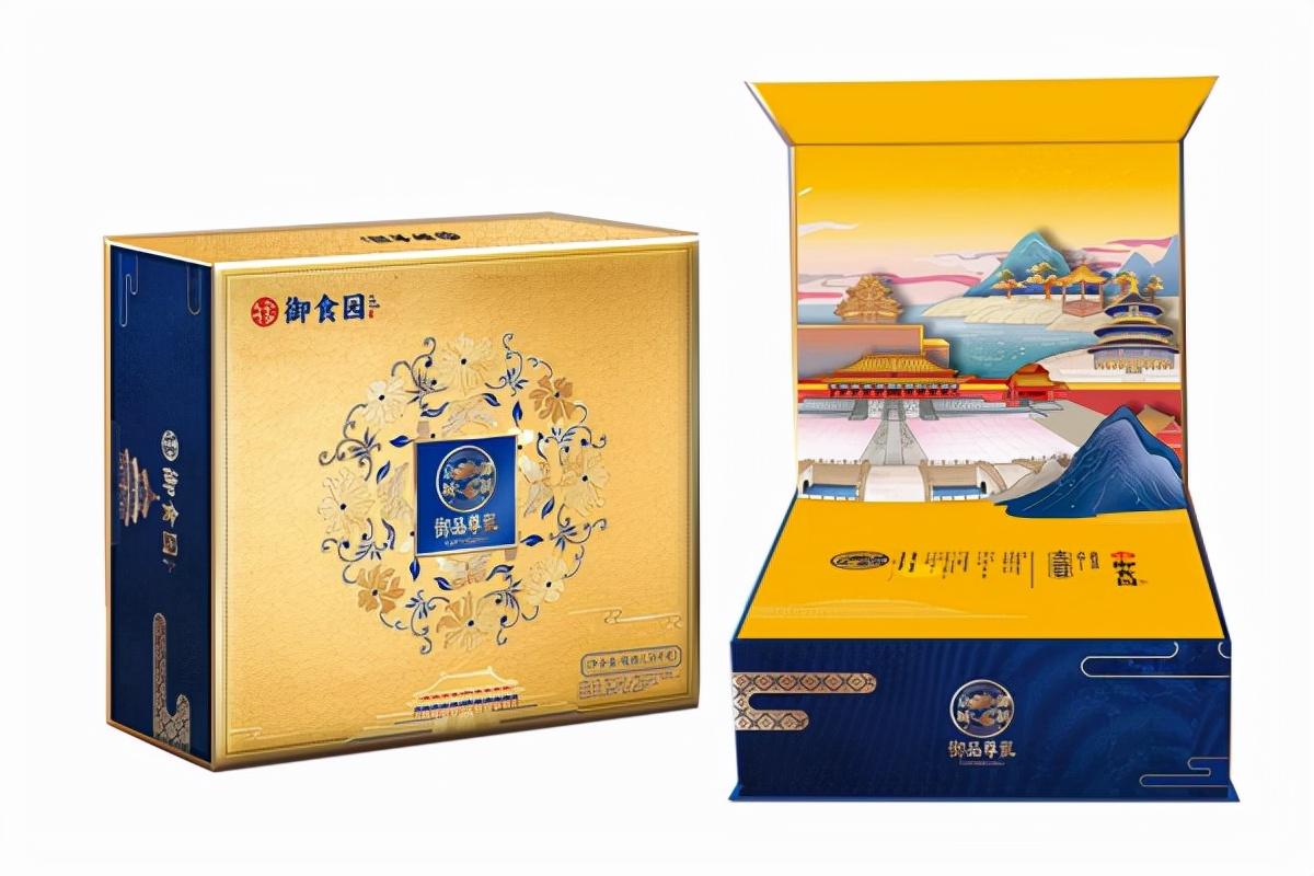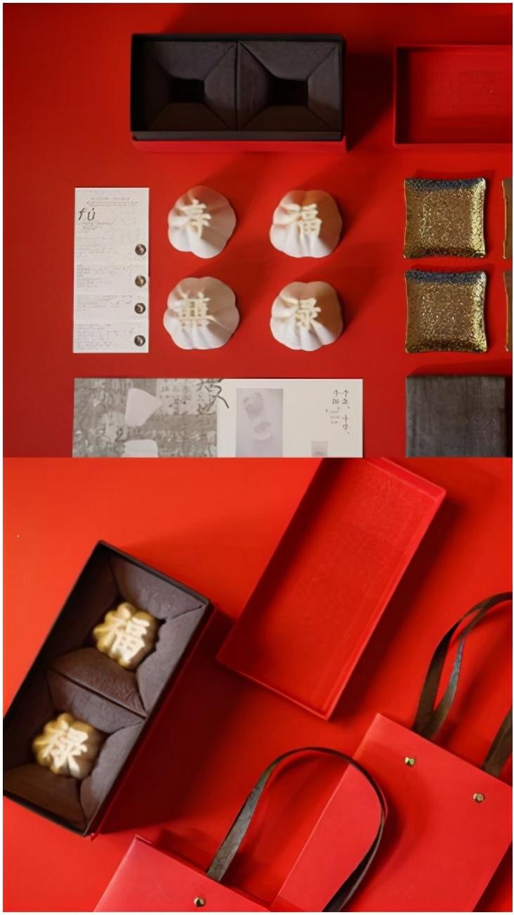 以传统中国红为外装设计,内装经典桃山皮糕点。除生肖牛外,还有寓意福禄寿喜、的造型糕点,将糕点、传统生肖元素与祝福文化相融于一体,亦是北京贺礼文化的体现。