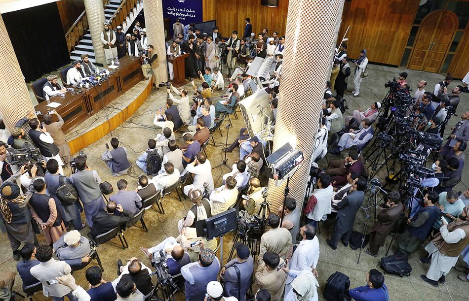 当地时间2021年8月17日,塔利班发言人扎比乌拉·穆贾希德喀布尔举行记者会,表示塔利班计划组建包容性政府。