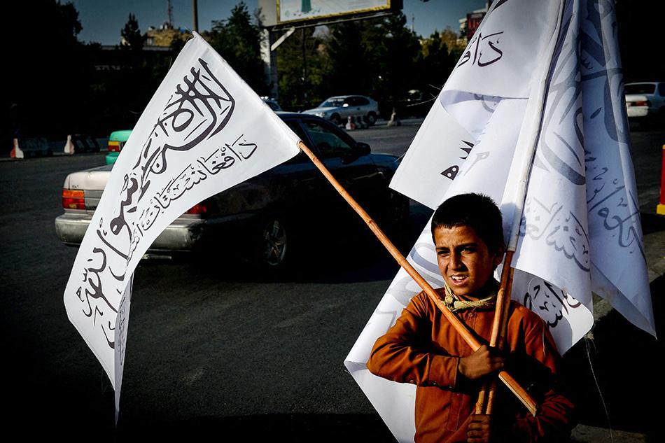 当地时间2021年8月22日,阿富汗首都喀布尔,塔利班统治下的当地街头。
