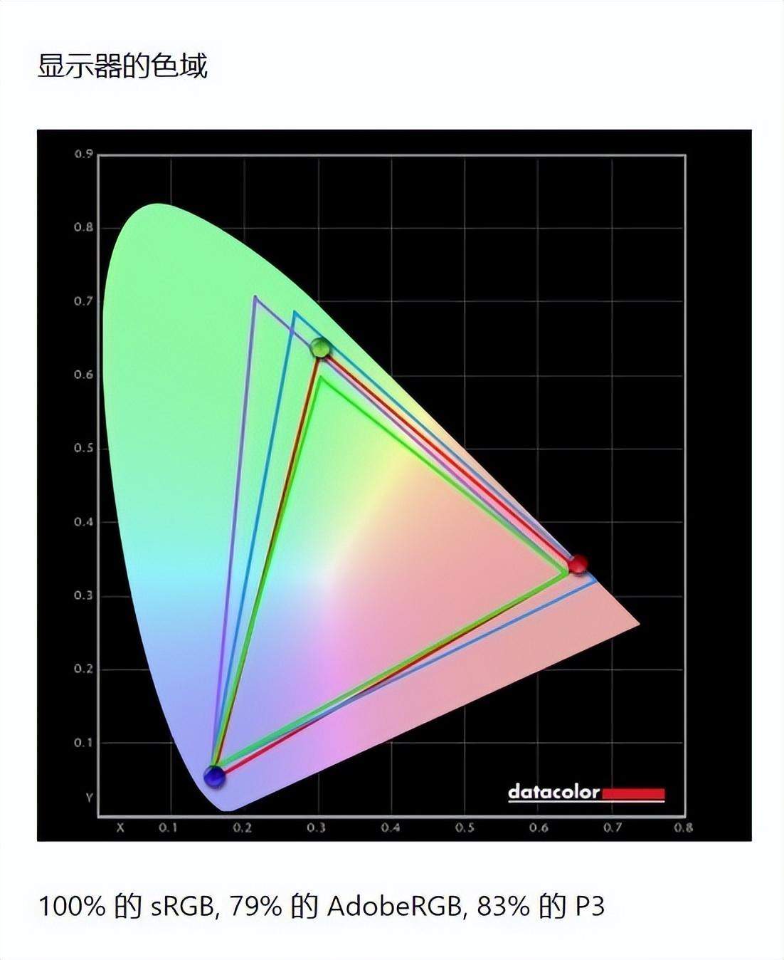 通过实测结果来看,NPC 240A在sRGB色域的覆盖度为,Adobe RGB色域的覆盖度为79%,P3色域的覆盖度为83%。