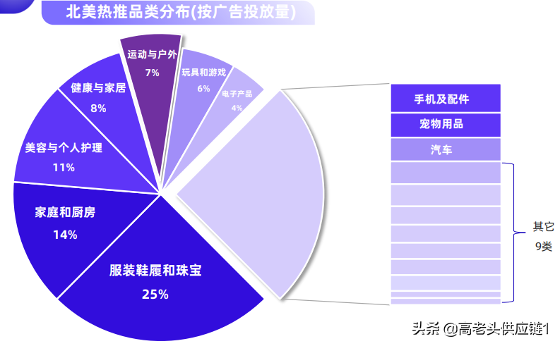拉美电商市场是近几年增长较快的新兴市场,从独立站推广的品类数据上看,除了主要的几个热品,玩具和游戏品类较为突出,约占8%。
