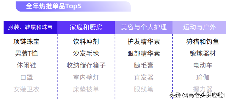 美妆类热推单品有睫毛膏、美甲油、唇釉、眼霜和粉底,价格在$20~$50区间多。个人护理类热推产品主要有卷发棒、护法液、面膜、眼部精华液和牙套,价格在$20~$50区间多。