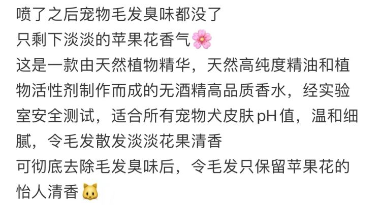 对宠物香水的评价,以掩盖动物气味为重点。/小红书截图