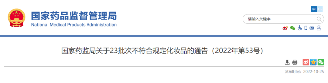 10月20日药监局通告23批次化妆品不符合规定