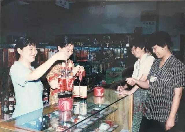 | 1997年,烟酒柜的员工在比赛捆扎酒瓶