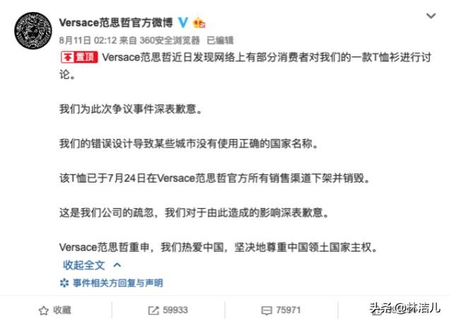 起因是意大利品牌Versace,也就是大家口中的范思哲近新推出了一款logoT恤,却赫然醒目地将香港、澳门列为。#国际品牌将港澳台列为#