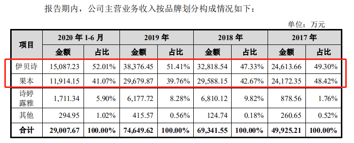 今年上半年,仙迪股份旗下各品牌收入均较上年同期有所下降,伊贝诗、果本和诗婷露雅分别录得销售额1.51亿元、1.19亿元和1711.34万元,其中伊贝诗和果本占主营业务收入的比重超过90%,为仙迪股份的核心品牌。