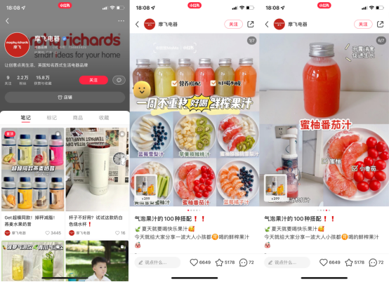 3. 摩飞电器的利他内容:健康榨汁教程以果汁教程为主,其中也会穿插其他的养生制作教程和居家好物,在知识传递同时安利产品。