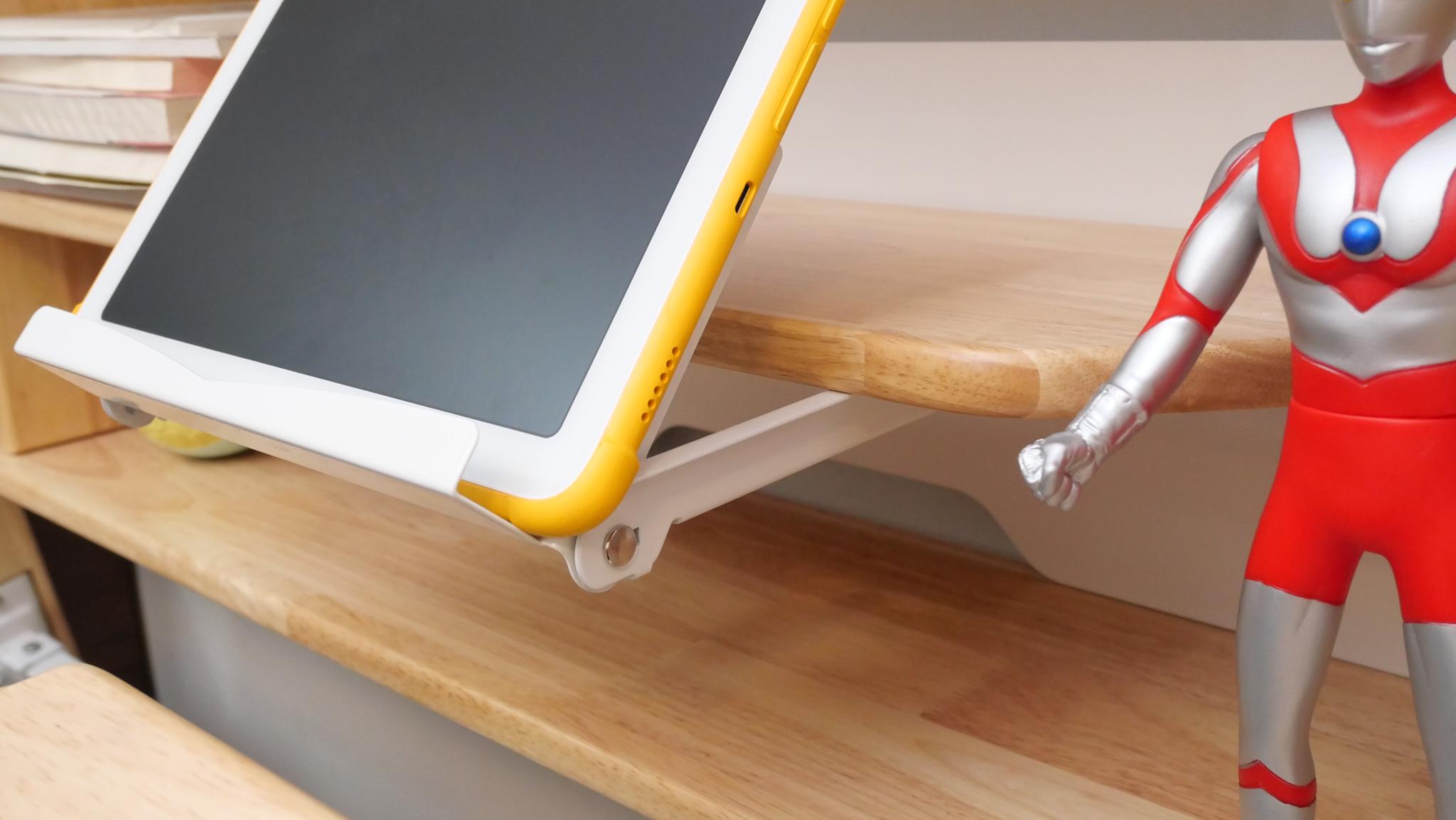 在第一隔层上带有一个阅读支架,一抽一拉就能成型,小巧方便,可以作为阅读支架,也可以成为平板支架,刚好它的视觉高度于眼平齐,当然需要注意的是,在对桌面角度进行调节时一定不要抽出支架,不然会阻挡桌面的角度调节。
