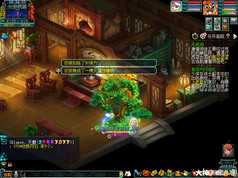 火属性草木灵:在ca、jy、cs、al、zz、xl、bx、仙缘洞天的某个地方选择右键点击"火属性草木灵"即可变树、需要注意的是,下一次变树的地点不可和上一次一致。