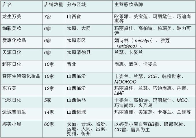 部分山西化妆品店主营彩妆