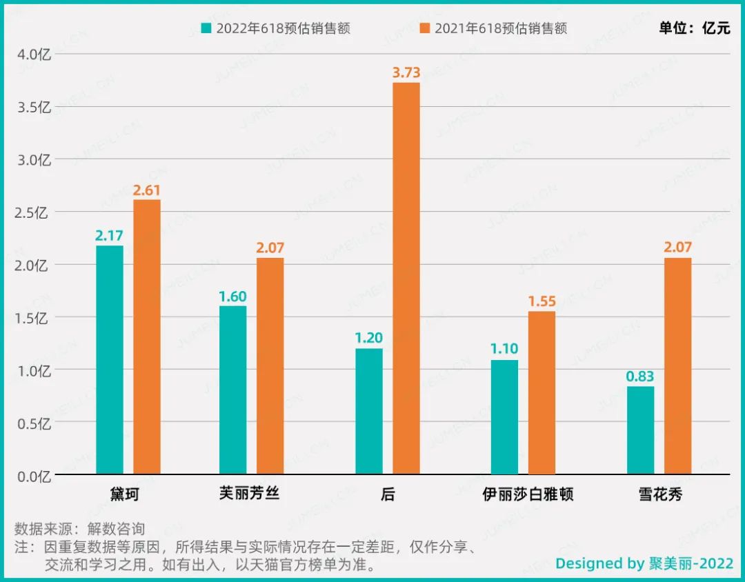 同样的情况也出现在雪花秀上,雪花秀今年618的销售额甚至没有破亿,从去年2.07亿,同比下跌了149.4%至0.83亿。