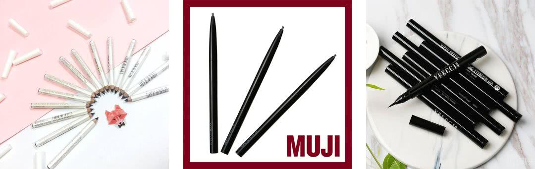 学生党选择:资生堂六角眉笔、无印良品旋转眉笔、唯资眉笔
