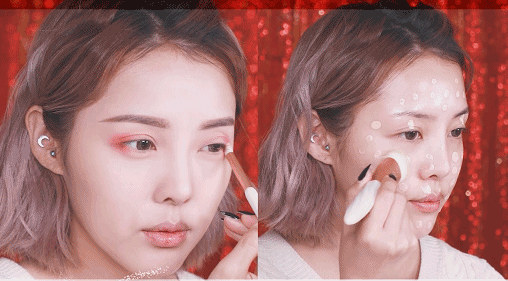 底妆部分,近火的是扁平头粉底刷,就是pony经常用的那款。但是我建议如果不是专业的,咱们还是用海绵蛋代替,便宜还不考验技术,拍拍拍就行!因为刷子产生的粉痕大部分是手法问题,咱们就不较劲了。