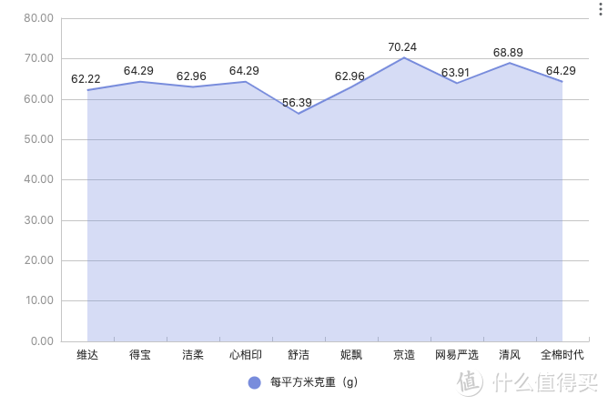 二、厚度这一测试主要是考虑到值友在使用湿厕纸的时候,对厚度的偏好。由于湿厕纸含水分,不能直接测厚度。于是将每个品牌湿厕纸取3片,一夜晾干。用香山厨房秤称重取均值,然后用每片克重/每片面积(m为单位)=每平方米克重。