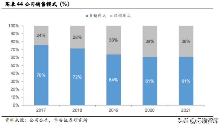 直销为主,对于终端需求及时反馈:公司采用直销为主的销售模式,2021 年公司直销模式占比为 61%。