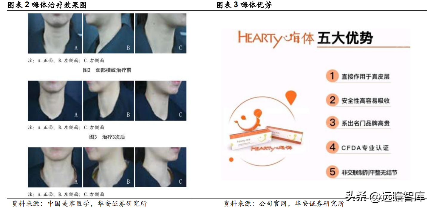 01医美龙头,产品为王1.1 first-in-class:III类证的颈纹产品嗨体