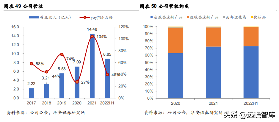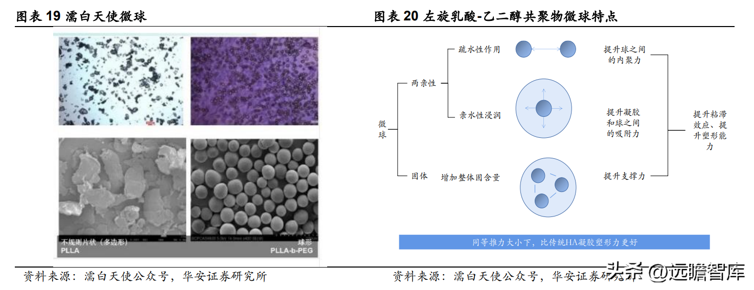 再生类产品濡白天使,双重再生原则作用周期更长:2021 年 6 月公司含左旋乳酸()-乙二醇共聚物微球的交联透明质酸钠凝胶产品上市申请获得药监局批准通过。7 月 21 日,公司“濡白天使”品牌上市发布会在北京召开。
