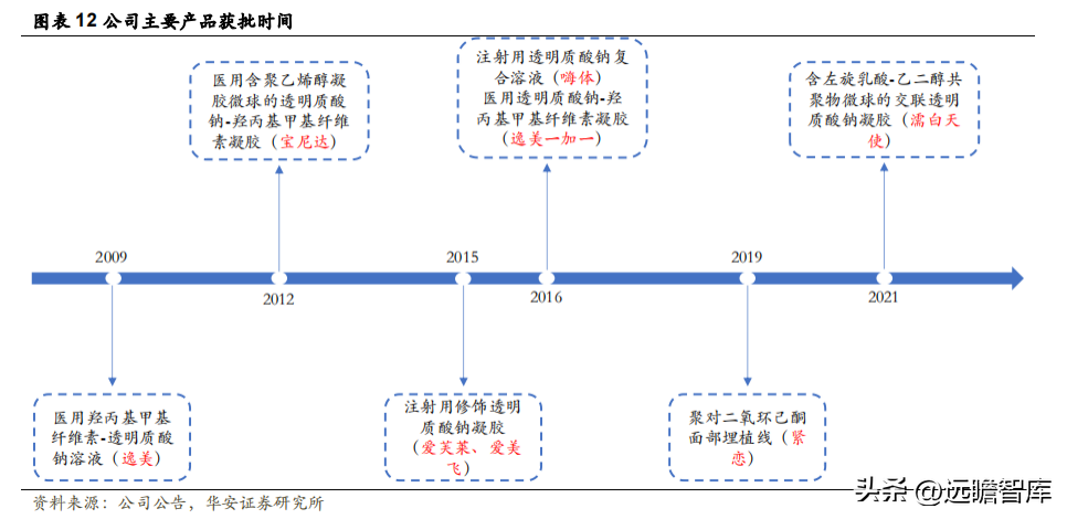 公司通过内部研发与外部合作,不断开发创新产品,将产品组合范围从生物医用材料向生物药品、化学药品领域扩展。其中,注射用 A 型肉毒毒素已经进入 III 期临床试验,预计于 2023 年向药监局提交 NDA 并于 2024 年上市。