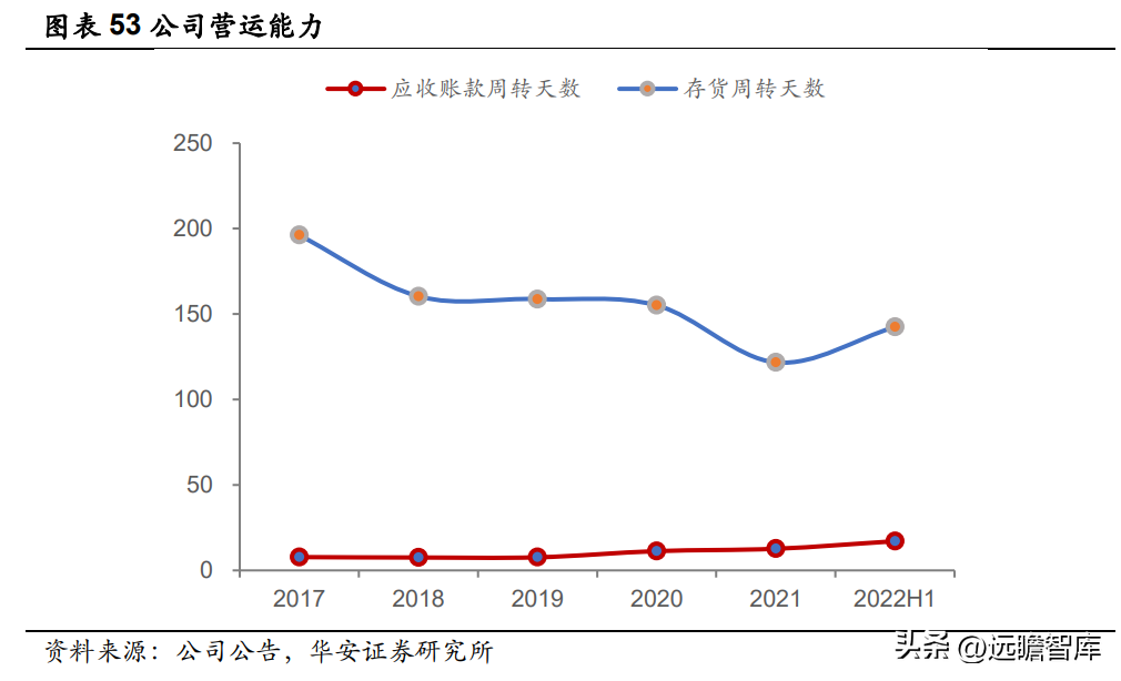 由于公司下游以医美机构为主,受疫情影响较大,因此公司营收账款周转天数增加。由于公司通过据市场需求及销售预测制定灵活的生产计划,并采用数字化的存货管理信息系统,加强存货管理,存货周转天数有所下降。