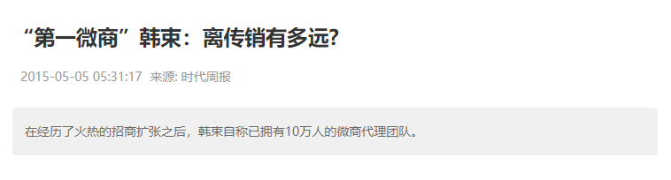 此外,韩束还赶上了微商的风口,曾一度被称为“第一微商”。