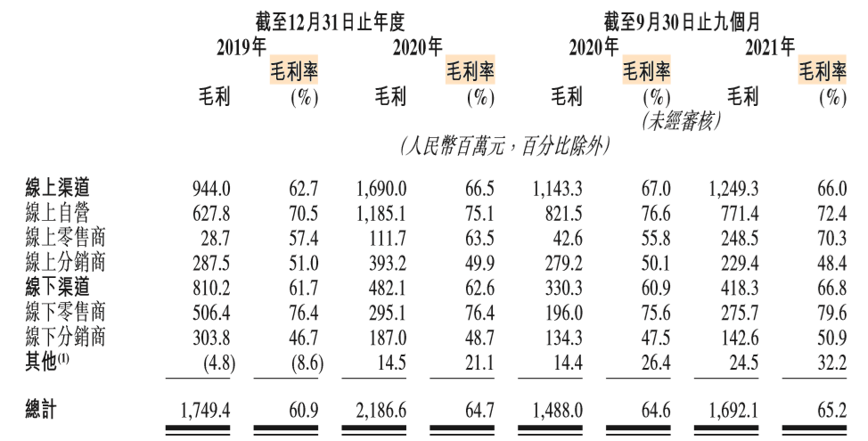 2019、2020年及2021年前九个月,其毛利率分别为60.9%、64.7%和65.2%。不过,同期上美集团的净利率较低,分别为2.1%、6%和9.6%。究其原因,与其高昂的营销费用不无关系。