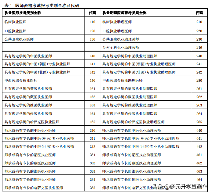 截至目前,我国医师资格考试共有41种类别,报考类别全称及代码如图