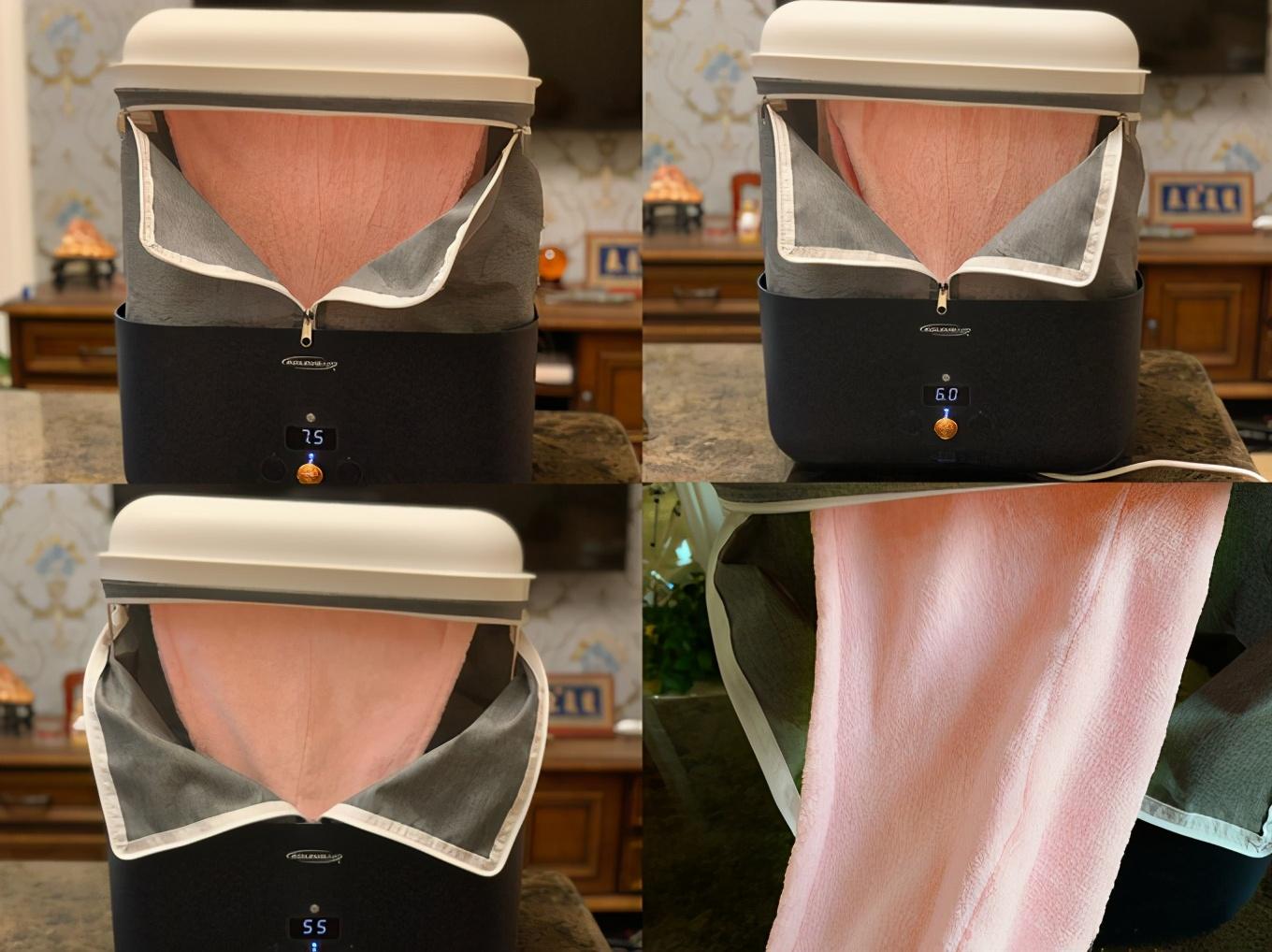 铺在底层托架上的毛巾也是干干净净,烘干杀菌后一点味道都没有了,再也不用担心的烦人的细菌和螨虫啦~
