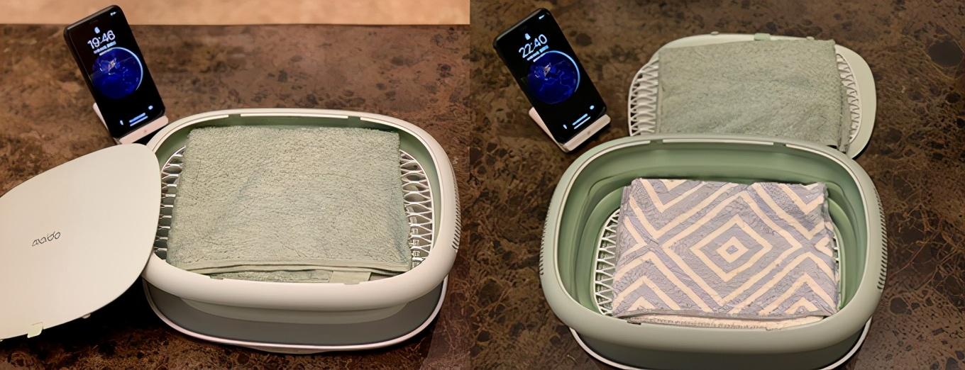 楼主早用的是左边moido这款便携干衣盒,可烘干和UV紫外线杀菌,同时还有香薰功能。仅55mm的厚度,适合一个人出差携带,日常在家用的话会有点小。