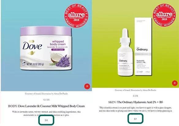 上榜产品代表获得了Allureamazing的认可,在相关售卖页面可以盖上Allure的红色印戳。