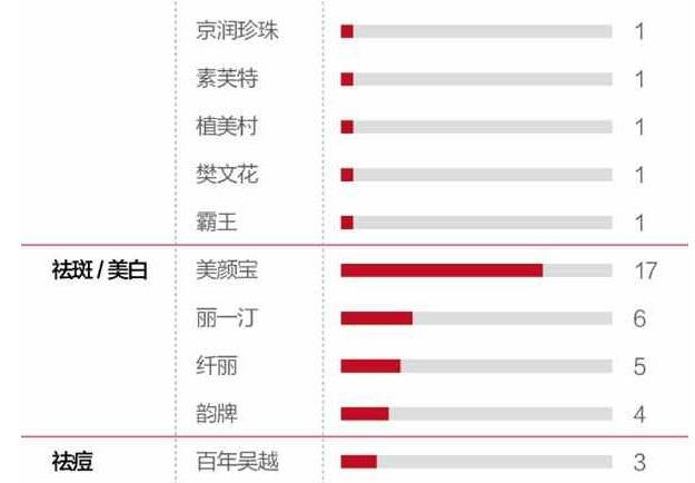 祛斑、美白产品排名第二,占总体不合格品比率为20.5%,不合格理由是汞超标、检出禁用激素;