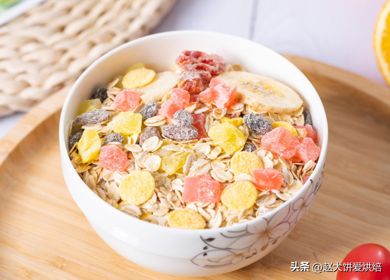 为满足大家好奇心,可可便冲上一杯水果燕麦片给大家展示。和普通燕麦片相比,它另外包含各种口味的酸奶块及新鲜果脯,不光营养更,而且奶香和果香一应俱全,更加美味,饱腹感也很是不错,因此成为可可平时工作之余的代餐必备。