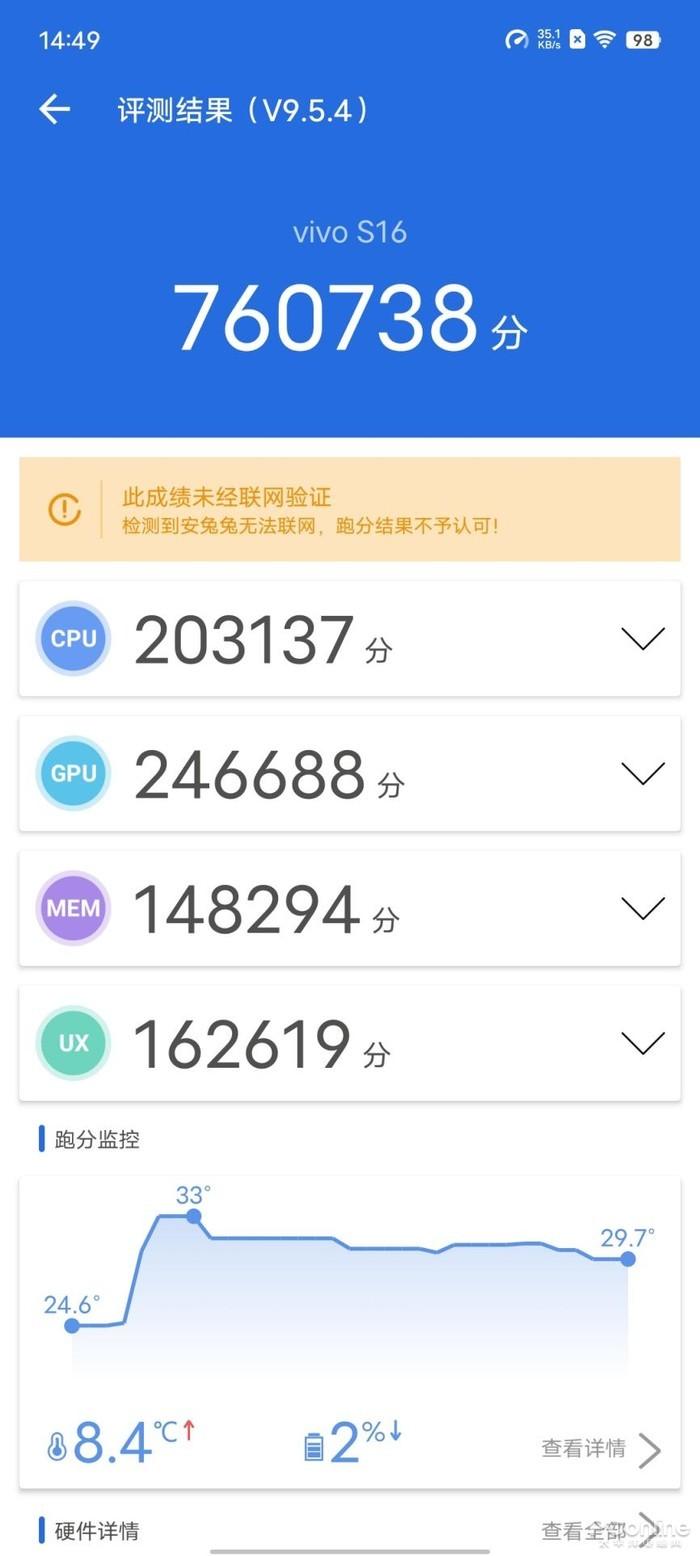 (vivo S16在安兔兔V9.5.4中跑出760738分)