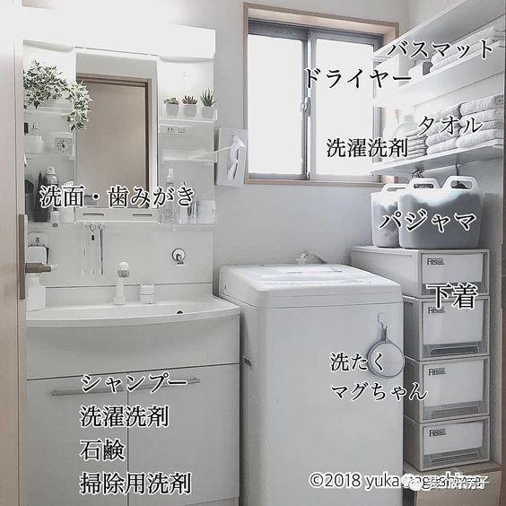 洗衣机周边利用好了,能放不少杂物。比如,洗衣机上方安置置物架,可以存放各种洗衣用品、毛巾、小衣服等。如果有空间,还可以晾一些衣服。