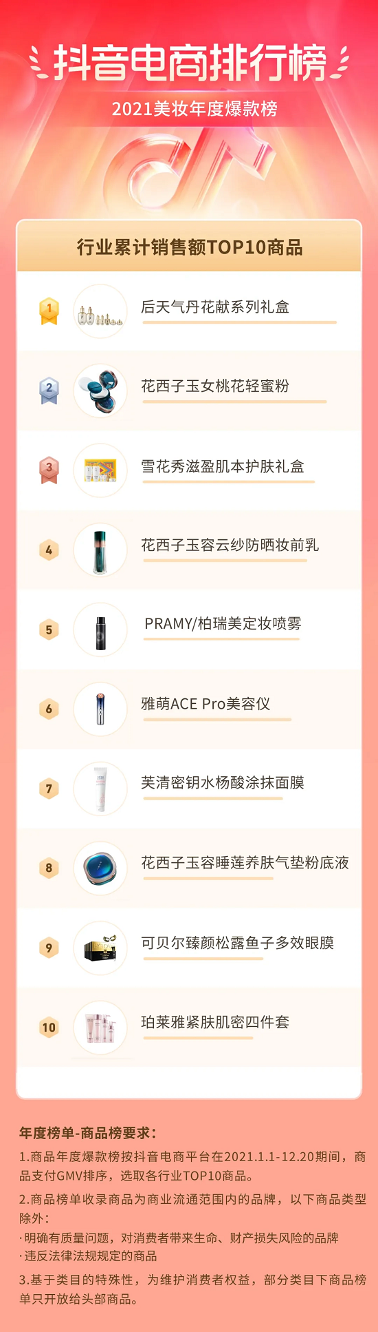 抖音电商美妆年度品牌排行榜及美妆年度爆款排行榜