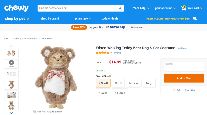 泰迪熊宠物服装采用毛绒材料制成,带来柔软,可爱的外观。前行的姿势使它看起来很逼真,胸前的格子蝴蝶结增添了一丝风格。