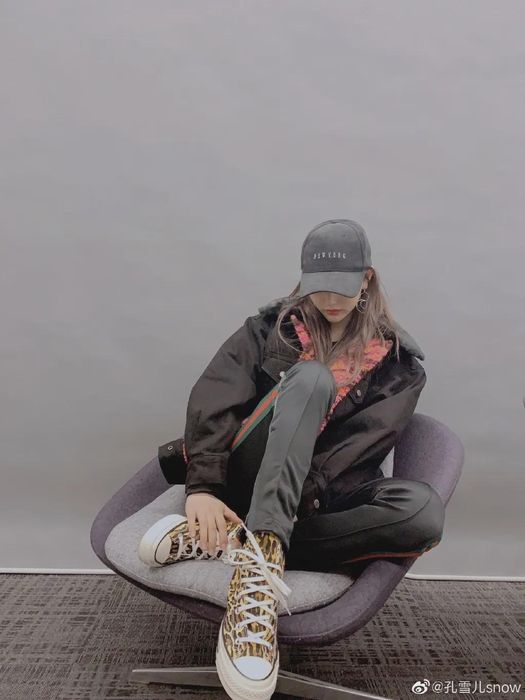 鞋子对孔雪儿来说是个重要的配件,帽子也是。在孔雪儿的自拍中常看到的配饰就是帽子,毛线帽棒球帽报童帽,可以说是不戴帽子不能出门,并且每个帽款都能在她的身上消化得很好。
