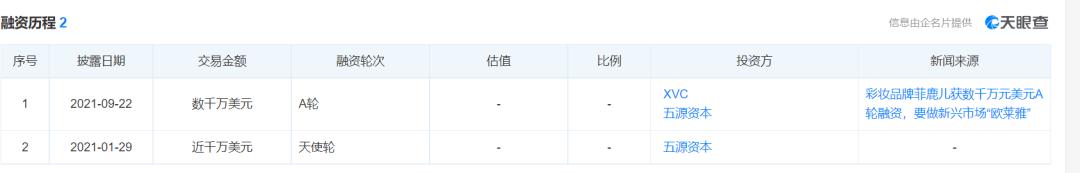 据天眼查显示,菲鹿儿在2021年就连续获得2次超千万美元的融资,两轮融资均能看到五源资本的身影,在新的A轮融资新增了XVC,资金主要将用于四个方面的建设,包含供应链平台及自有工厂建设、中台及前台的人才梯度搭建、产品研发投入、品牌建设和营销推广费用等。