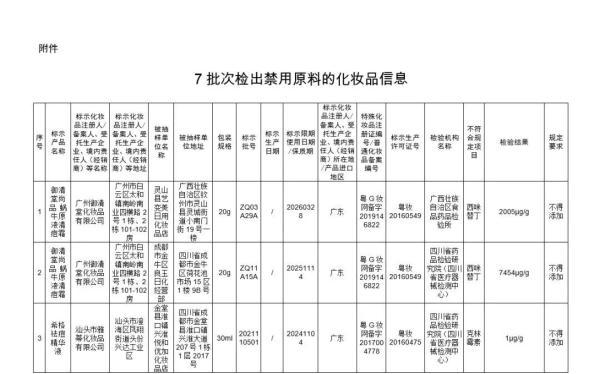 附件:7批次检出禁用原料的化妆品信息