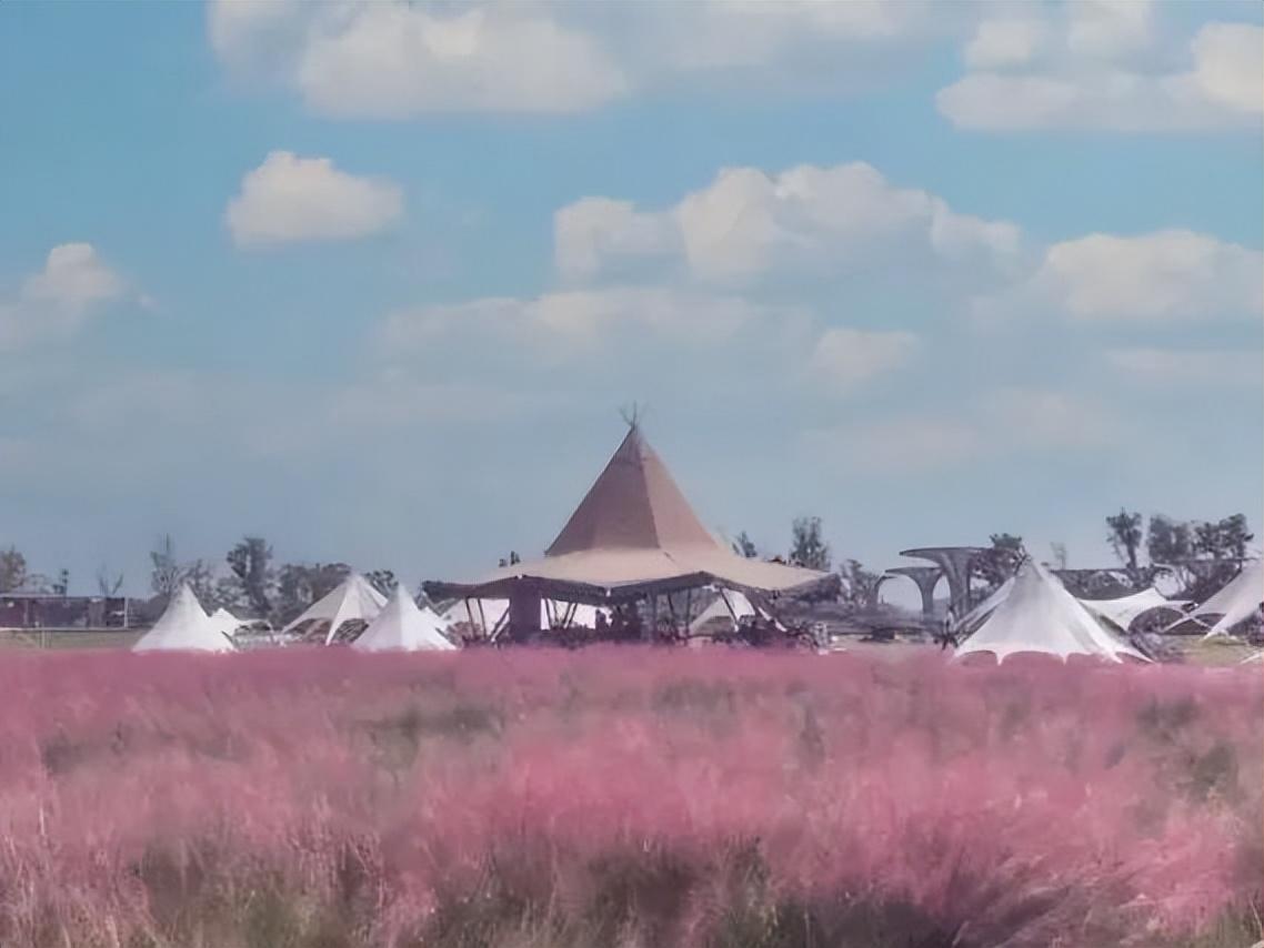 就在音乐草坪的边上,氤氲着一片“粉色烟雾”,晚风吹拂之时,轻粉如雾、飘飘洒洒......粉黛海如发丝般轻盈摇曳。