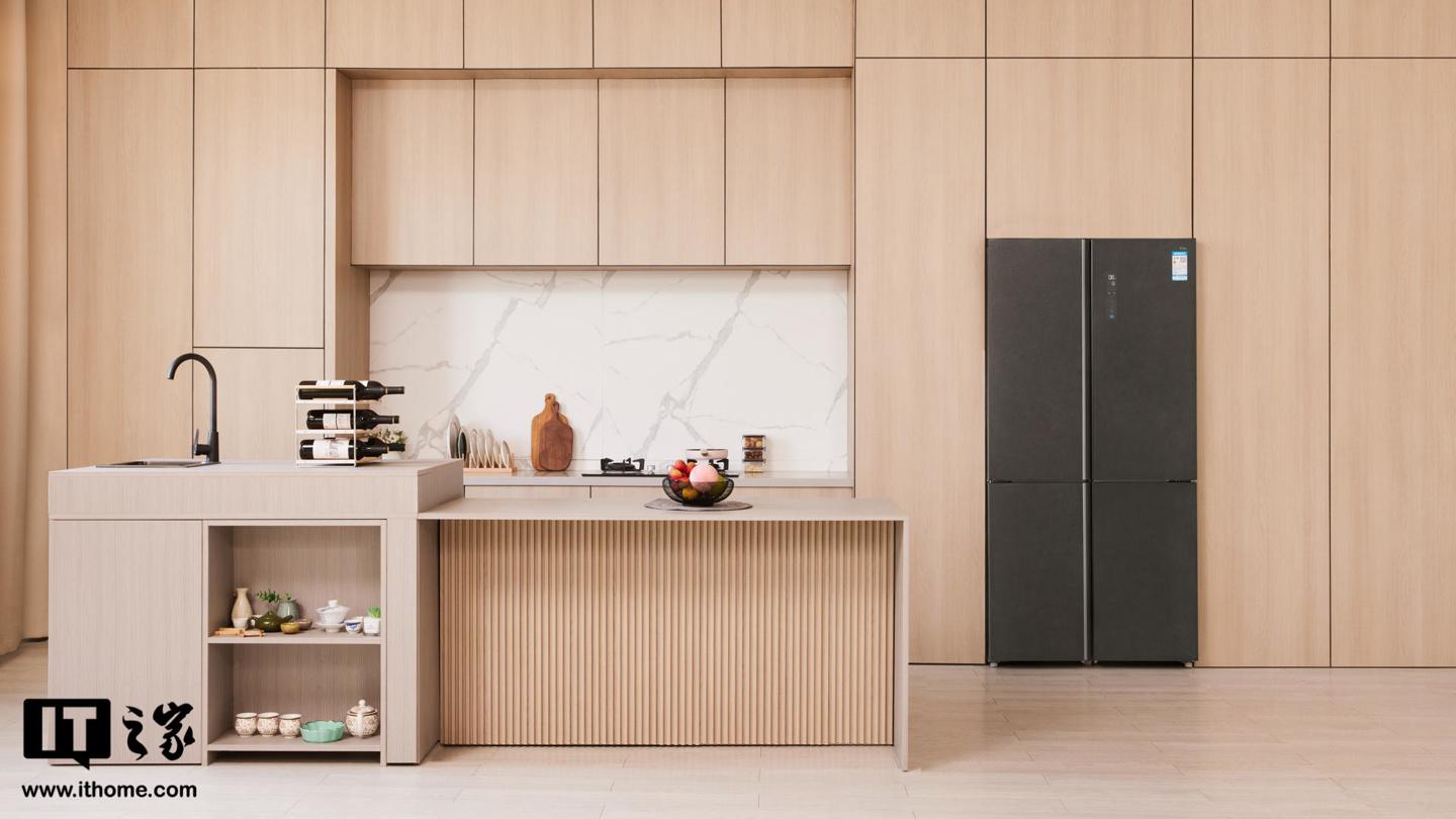在安装方式上,TCL 格物冰箱 Q10 同样支持嵌入式安装,箱体厚度为 58cm,可自然融入到橱柜中,且支持 90° 直角开门。