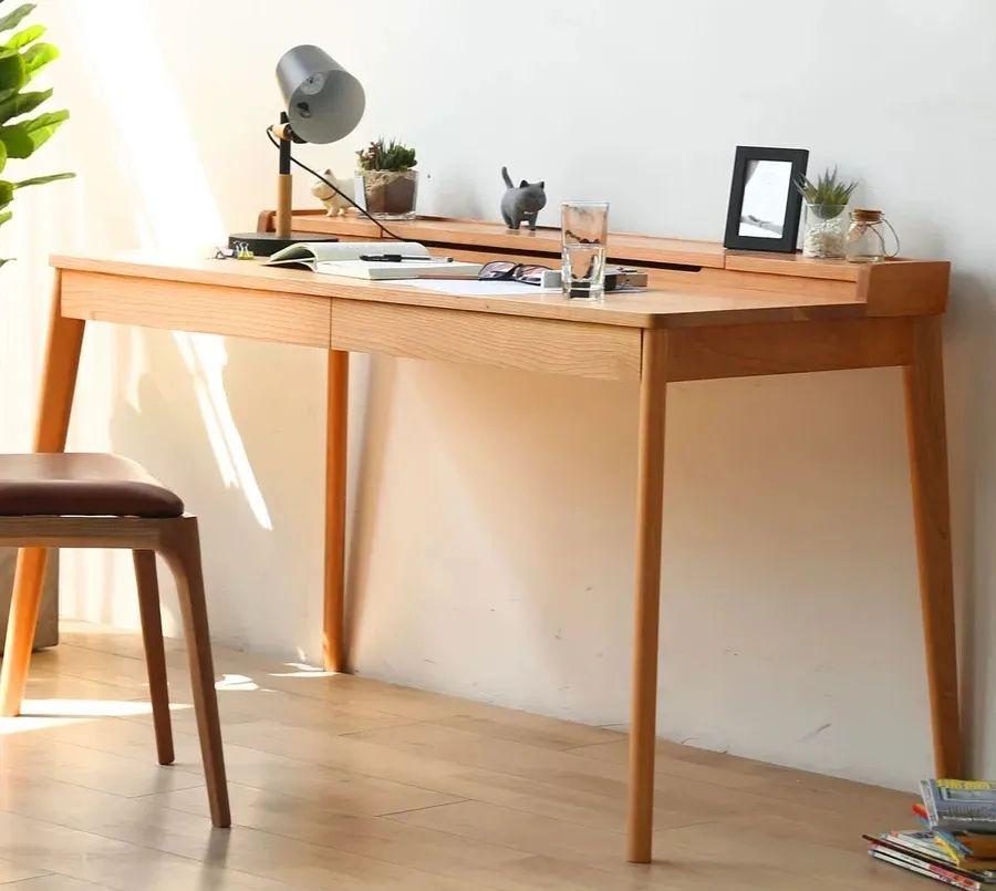 这家店铺的材质以樱桃木为主,因为樱桃木稳定性比较好 ,而白橡木材质如果保养不好则容易开裂。 例如我家阳台上的写字桌因为常常会被暴晒,所以我就使用了这家店下图的樱桃木写字桌,两年多了没有任何问题。