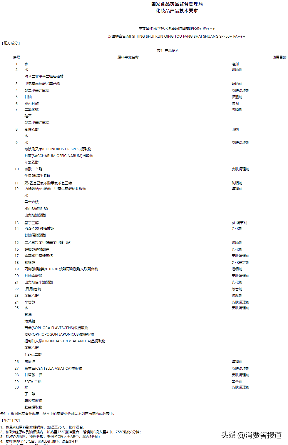 蜜丝婷MISTINE检出批件及标签未标识的防晒剂氧化锌一款防晒霜的防晒力与其防晒剂关联甚大,不同防晒剂如何搭配、添加量多少,都会直接影响防晒霜的防晒果。