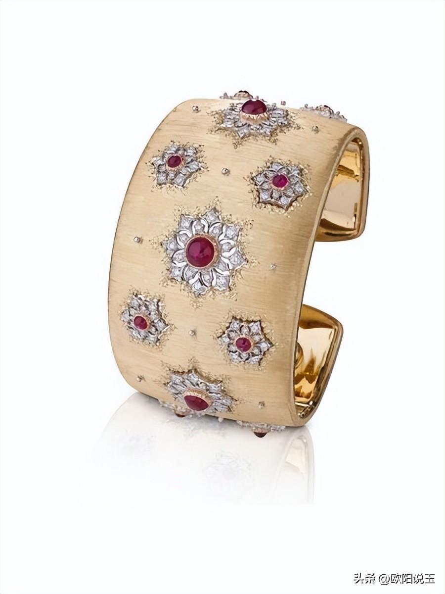 12.布切拉蒂Buccellati以其华丽的质感黄金首饰而闻名,是意大利奢华的代名词。这家家族经营的珠宝品牌凭借其标志性的rigato雕刻技术创造出让人一眼就能认出的作品,工匠们在金属表面雕刻平行线以产生闪亮的果。它的作品通常镶嵌有切割钻石或凸圆形红宝石或祖母绿,其设计灵感来自文艺复兴和罗马帝国。更重要的是,该品牌通过其工匠保持古老的技术,因此每件珠宝都具有真实的感觉。