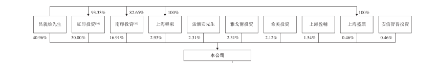 发行前,吕义雄先生于公司已发行股本总额中直接拥有约40.96%的权益及(通过红印投资、南印投资、上海韩束及上海盛颜)间接拥有约50.31%的权益。为公司的控股股东。
