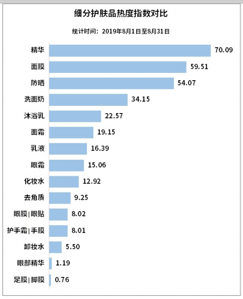 护肤品作为化妆品行业中大的一个子类别,热度居行业之首。