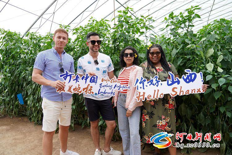 2022“打卡中国·美地标”网络国际传播活动,围绕“长江文化”“黄河文化”“大运河文化”“冰雪文化”和“民族文化”五个话题,在数个省、自治区选择一批在当地有独特性、在中外有差异性的文化地标进行线下打卡。本次打卡中国山西段活动中,来自美国、英国、叙利亚、危地马拉、委内瑞拉的8名视频博主、外媒记者,围绕“黄河文化”这一主题,打卡黄河山西段壮丽的自然风光、多彩的人文图景、丰厚的文化遗产,展现黄河流域山西段的独特气质,推动三晋黄河文化的国际传播。他们从运城启程,沿着黄河主要流经的临汾、吕梁等市一路北上来到河曲县。首先参访的是美丽乡村榆岭窊,外国网红博主、中央广播电视总台国际在线的记者团队以及省、市网信办相关人员,一同欣赏了农村文化大院内的精彩表演,与村民热情互动;登上观景台观看了农业基础设施建设全貌,了解榆岭窊村沟域治理、现代化新农村建设、产业发展等情况;来到日光节能温室大棚,现场观摩了有机绿色果蔬产业;走进海红果特色产品示范基地,了解海红果种植、产量、品质等情况。