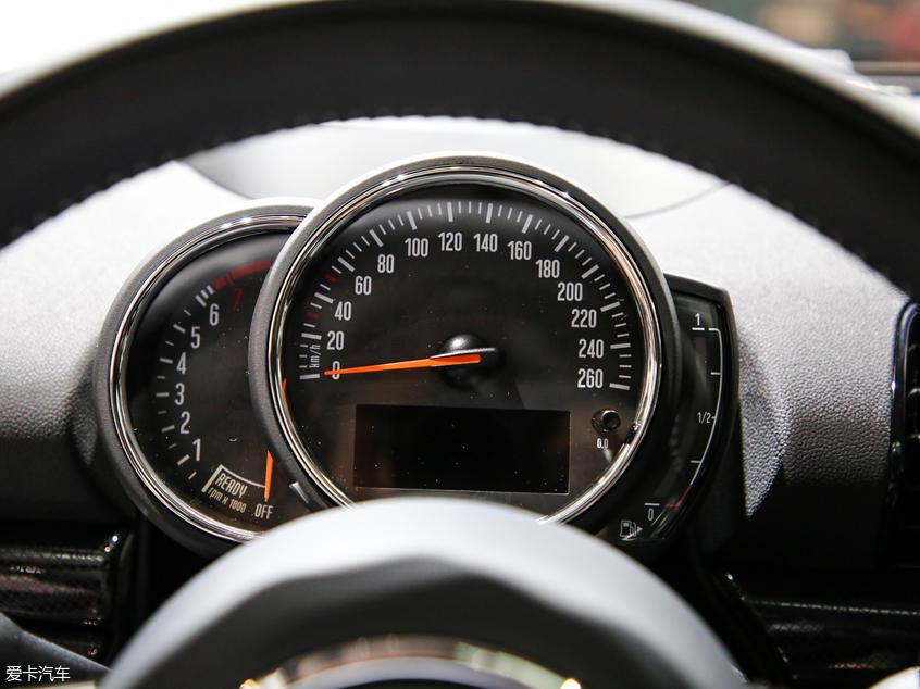 MINI的仪表盘较为复古风,指针式时速表位于正中间,两侧分别为发动机转速表与油表,四个字---简单粗暴。
